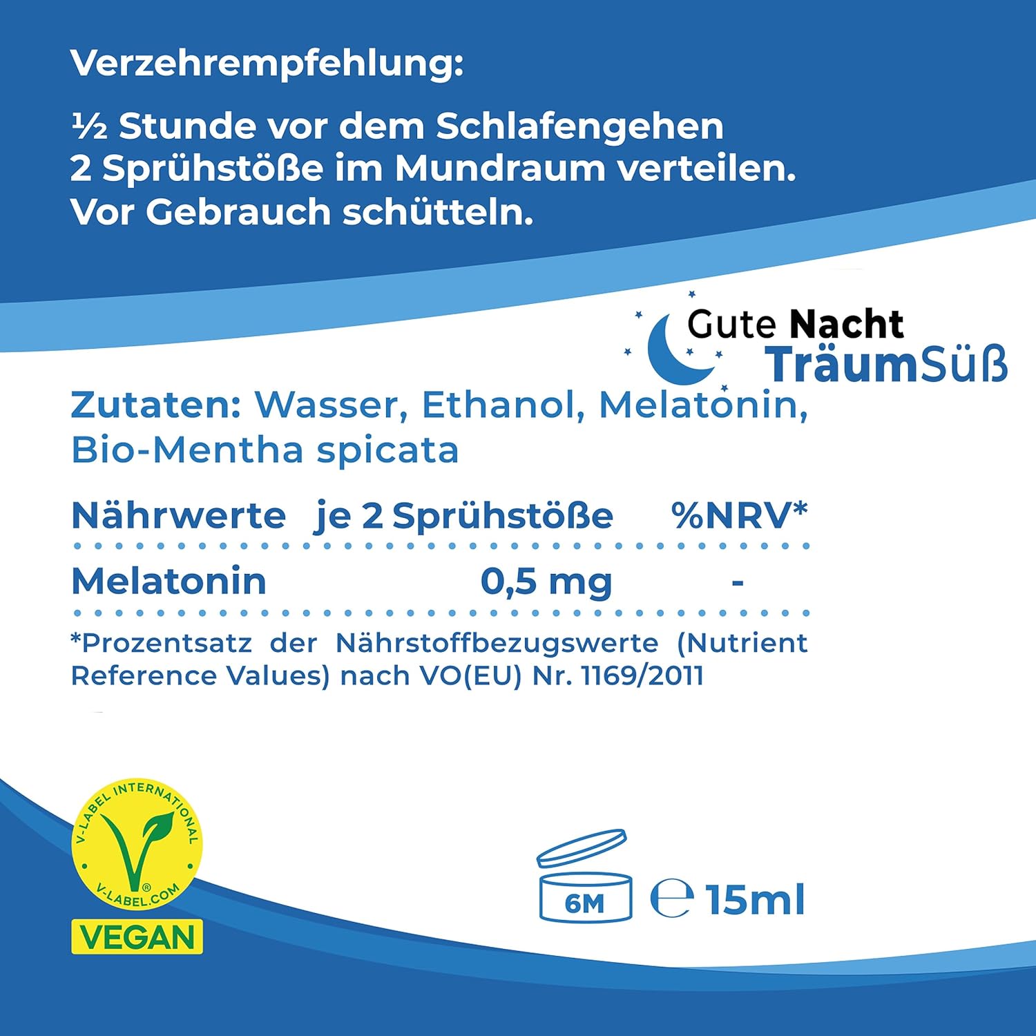 Melatonin Spray - Gute Nacht & Träum Süß - Dietary Supplement - Vegan - 15 ml